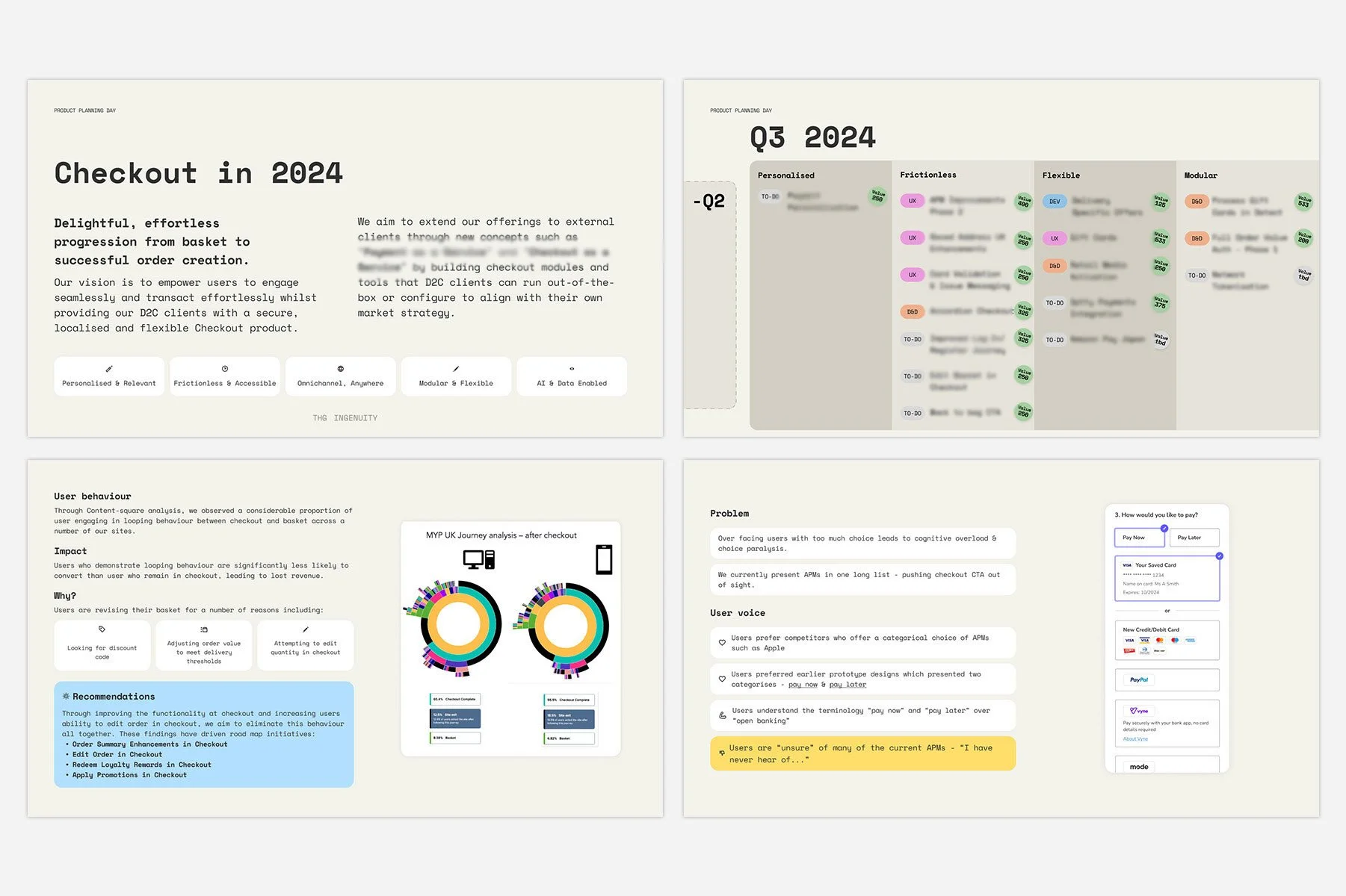 Alongside product demos, I produced and presented the Future of Checkout roadmap at our quarterly Product Planning Week to the SMT and heads of department.